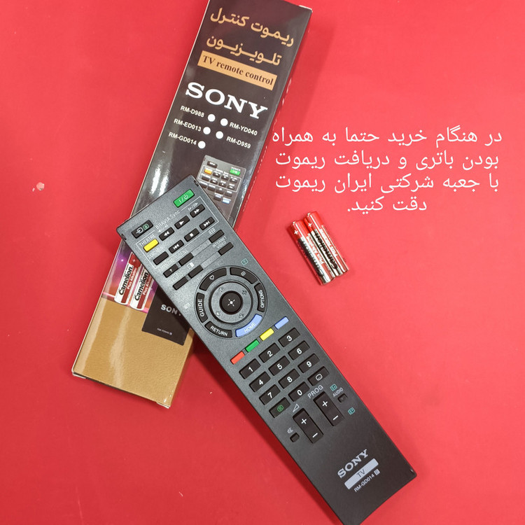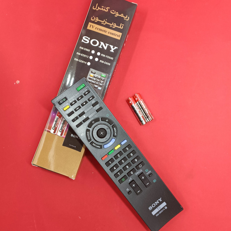 ریموت کنترل تلویزیون سونی مدل RM-GD014 مناسب تلویزیون های سونی است. این ریموت کنترل در پشت خود کلیدی دارد که وظیفه روشن و خاموش کردن ریموت کنترل را به عهده دارد و به اصطلاح به ریموت کنترل (پشت پاور) معروف است. داخل جعبه شرکتی بسته بندی شده است. در داخل جعبه یک جفت باتری نیم قلمی آلکالاین هم موجود است.