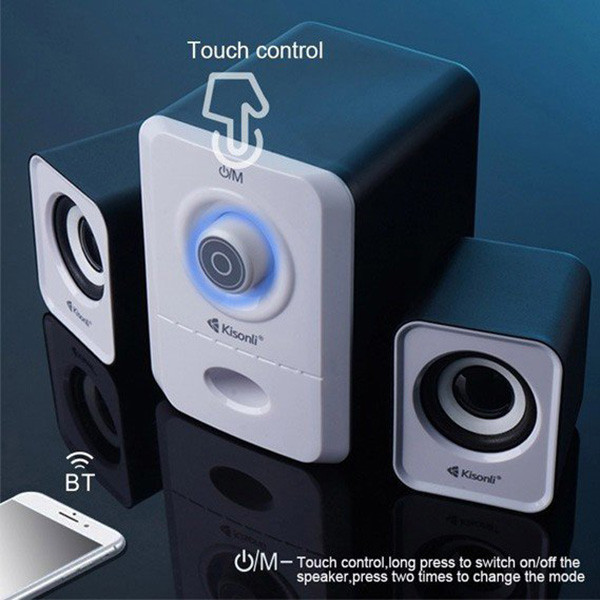 اسپیکر لپ تاپی سه تیکه Kisonli مدل U-2900BT از نوع بلندگو های دسکتاپی و رومیزی سیم دار و به عنوان یک پخش کننده خانگی کوچک با کیفیت بالا عملکرد صوتی عالی و طراحی مدرن ارائه شده است. این ست شامل یک ساب ووفر با سایز 13.5×12×10 سانتی متر و دو بلندگو با ابعاد 6.3×5.5×6 سانتیمتر کوچک، سبک و کم حجم با با تولید صدای شفاف، با کیفیت و رسا شما را شگفت زده میکند. برق اسپیکر U-2900BT با USB تامین می شود و با توجه به قابلیت اتصال بلوتوث و با سیم شما میتوانید از این اسپیکر برای دسکتاپ، لپ تاپ، آی پاد و انواع دستگاه هایی که از اتصال بی سیم یا پورت 3.5 میلی متری صدا پشتیبانی می کنند، استفاد کنید و با دارا بودن دکمه لمسی پاور و همچنین نورپردازی بر روی دکمه ساب ووفر زیبایی خاصی به میز شما خواهد بخشید. تفاوت نسخه U-2900BT با نسخه U-2900 معمولی در قابلیت پشتیبانی از اتصال بی سیم و بلوتوث می باشد و در دیگر ویژگی های فنی دقیقا یکسان هستند