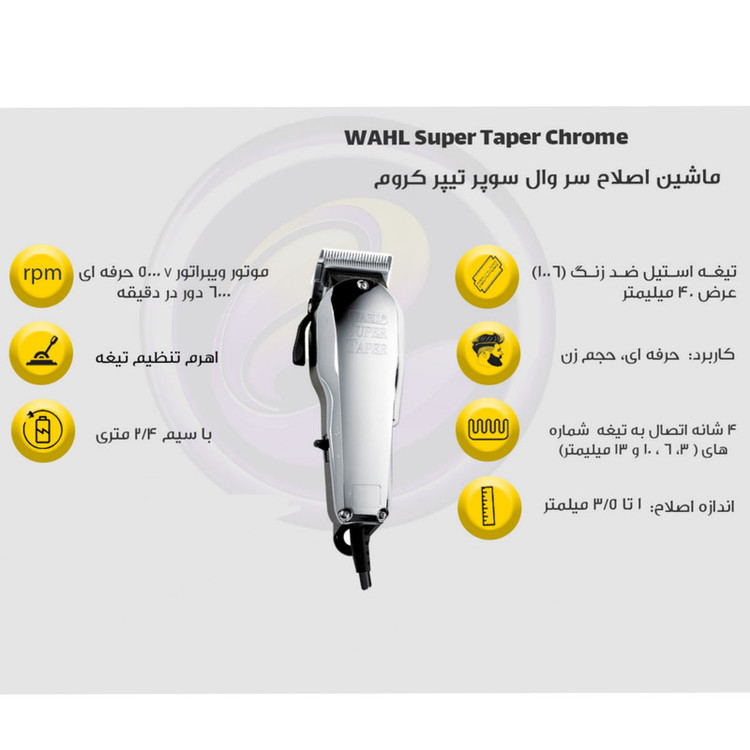 ماشین اصلاح حجم زن وال سوپر تایپر کروم WAHL Super Taper Chrome یکی از لوازم اصلی صنعت آرایشگری است و به عنوان یکی از بهترین ماشین های اصلاح مخروطی در سراسر جهان شناخته می شود. ماشین اصلاح Super Taper مجهز به موتور الکترومغناطیسی v5000، قدرت زیادی دارد تا شما را در یک روز شلوغ در آرایشگاه سپری کند؛ و قابل استفاده برای موهای خیس یا خشک، ضخیم یا نازک