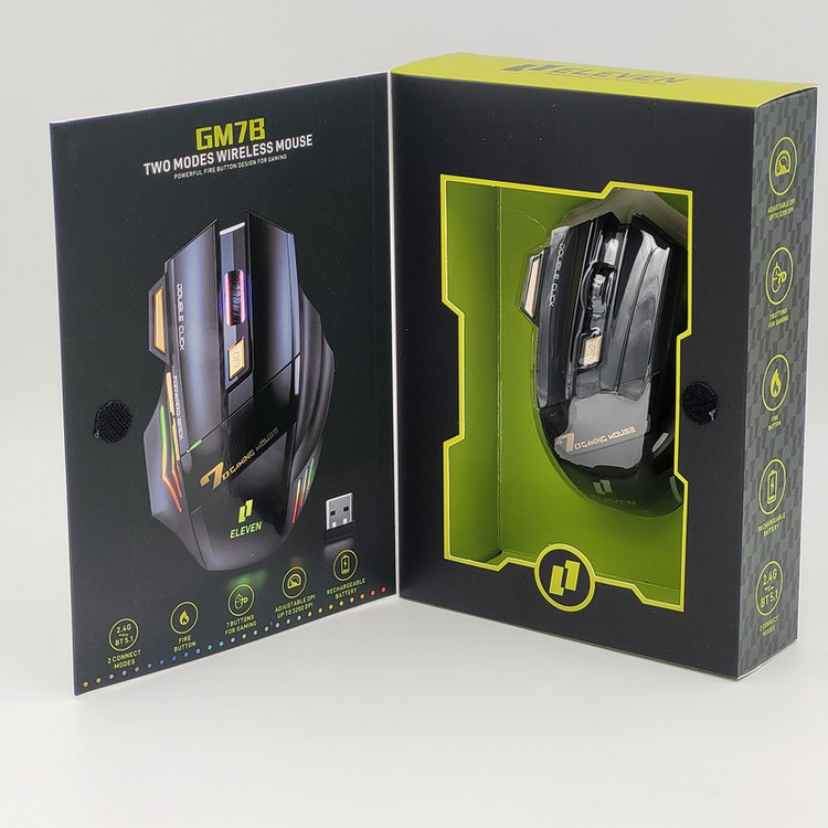 ماوس ایلون GM7B یک ماوس بیسیم گیمینگ که در کنار دقت بالا، زمان تأخیر و لگ بسیار کوتاهی دارد و همین موضوع GM7B را به یک ماوس گیمینگ مناسب برای گیمرهای حرفهای و نیمه حرفهای تبدیل میکند. یکی از قابلیت های عالی این ماوس ،اتصال دوگانه آن است که هم قابلیت اتصال با بلوتوث و هم با دانگل را دارد. برای انتخاب کردن یا مشخص کردن نوع اتصال ،زیر این ماوس سوییچ وجود دارد که میتوانید انتخاب کنید. به لطف سرعت انتقال سریع، تأخیر بسیار کم کلیک و تغییر فرکانس یکپارچه در شلوغترین محیطها، حتی متوجه نخواهید شد که در حال بازی با یک موس بیسیم مشغول بازی هستید ،GM7B مانند نوع سیمی خود دارای یک کلید دابل کلید در کنار خود است که با استفاده از انگشت اشاره میتوان آن را فشرد.از دیگر قابلیت های این ماوس شارژی بودن آن است که شما را از خریدن باتری بی نیاز میکند. با توجه به اتصال دو گانه این ماوس شما میتوانید در این ماوس را هم به لب تاب و هم به PC به صورت هم زمان وصل کنید .از دیگر نکات مثبت این ماوس ،سایلنت بودن کلید های آن است.
