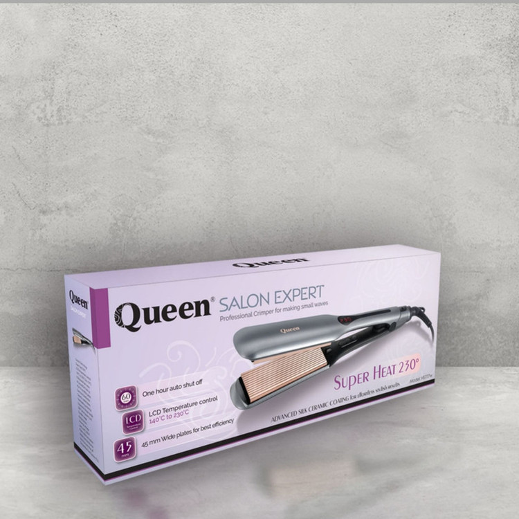 ویو مو کوئین مدل HS777w یک دستگاه حالت دهنده تک کاره است که میتوانید با استفاده از آن به راحتی موج های ریز را بر روی موی خود ایجاد کنید. عرض صفحات این دستگاه 45 میلیمتر طراحی شده تا بتوانید حجم مناسبی از مو را داخل آن قرار دهید. همچنین این دستگاه دارای قابلیت تنظیم درجه حرارت هست که با استفاده از دکمه های تعبیه شده روی بدنه داخلی دستگاه میتوانید درجه حرارت آن را بین 140 الی 230 درجه سانتیگراد تنظیم کنید. قابلیت دیگر این دستگاه صفحه نمایشگر LCD است که خاموش بودن دستگاه و یا درجه حرارت آن را به شما نمایش میدهد. همچنین سیستم خاموشی خودکار بعد از یک ساعت و دکمه قفل صفحات نیز در این ویو مو وجود دارد.