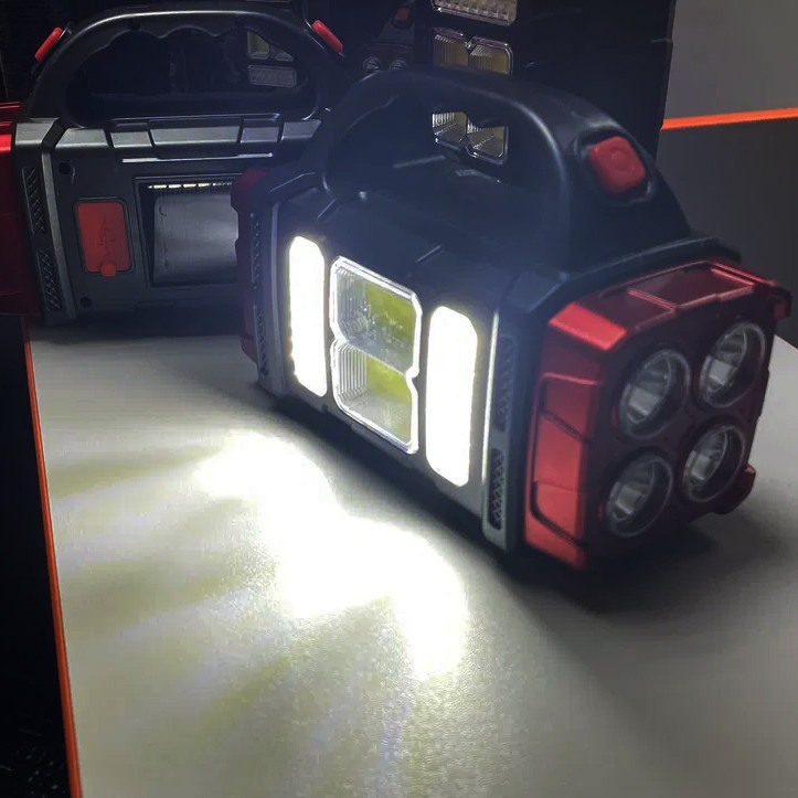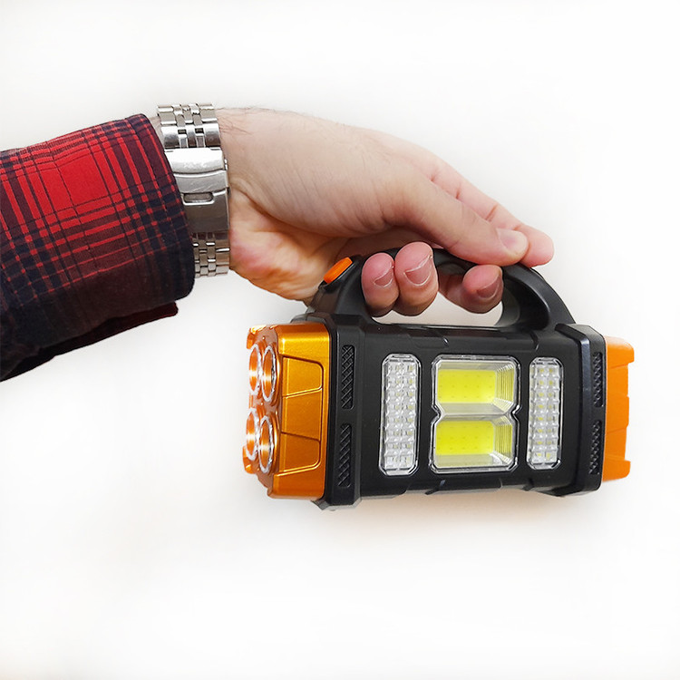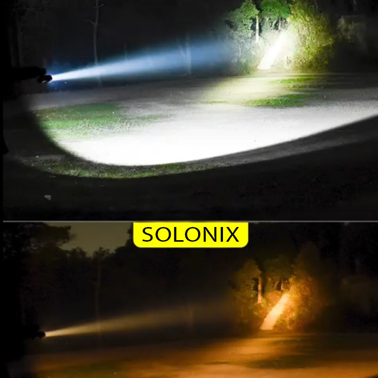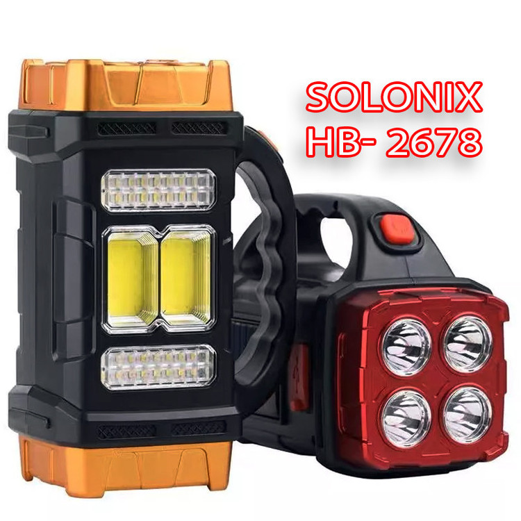 این چراغ قوه نورافکنی دستی با لامپ های LED و COB پرنور در دو حالت متمرکز فوکوسی و پخشی ، یک محصول کاربردی برای نگهبانان ، کمپ ها ، کوهنوردان ، مسافرت و... است. نورافکن دستی سولونیکس قابلیت شارژ از طریق نور خورشید و کابل USB با باتری داخلی شارژی نیکل منیزیومی 1500 میلی آمپر ساعته را دارد. جنس این محصول از نوع ABS و ضد آب در مقابل باران (IP44) است و مدت زمان شارژ محصول با توجه به استفاده از کابل یا نور خورشید 3-2 ساعت و میزان بازدهی با توجه به نوع استفاده 5-8 ساعت میباشد. همچنین این چراغ دستی دارای 4 حالت نوردهی است که یک حالت مناسب استفاده به عنوان چراغ قوه ، 2 حالت مناسب استفاده در کمپ و اتاق و یک حالت هم با نور زرد مناسب استفاده در مه و اعلام هشدار است.