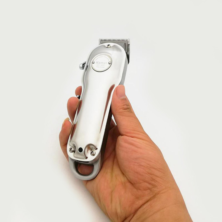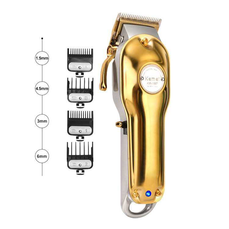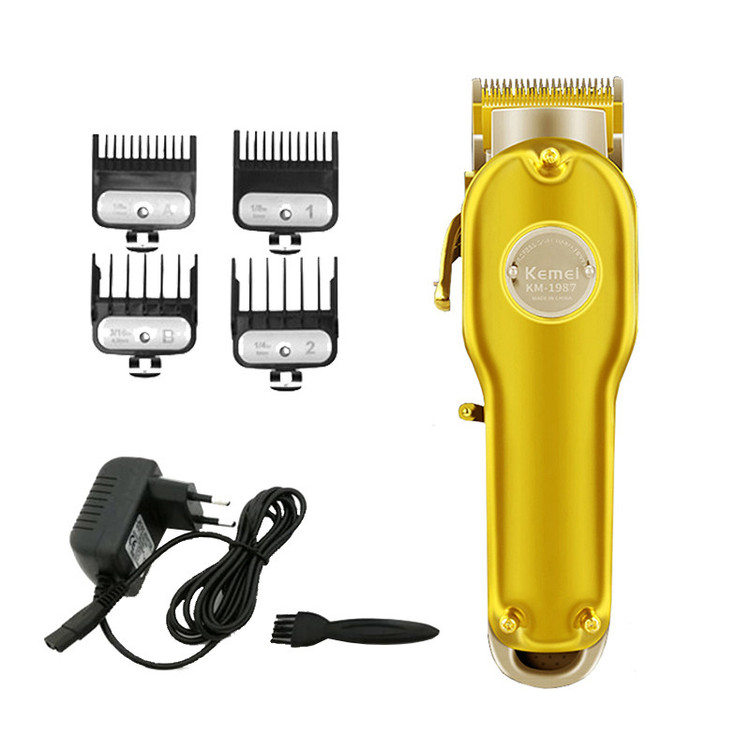 ماشین اصلاح کیمی مدل KM-1987 دارای موتور قدرتمند با دو سرعت قابل تنظیم ، مناسب برای کار حرفه ای (آرایشگاهی) و شخصی میباشد. این ماشین اصلاح دارای اهرم قابل تنظیم است که بر اساس نیاز برای کار سایه زدن میتوانید استفاده نمایید. تیغه هایی از جنس استیل ضد زنگ را دارد که دقت بسیار بالایی را دارد. این دستگاه مجهز به ۴ عدد شانه در سایز های (۳ میلی متر ، ۶ میلی متر ، ۱۰ میلی متر ، ۱۳ میلی متر) میباشد،که میتوانید به دلخواه و بر اساس نیاز روی آن تعبیه کنید. ماشین اصلاح کیمی مدل KM-1987 دارای باتری قابل شارژ ۲۵۰۰ میلی آمپری میباشد که پس از ۳ ساعت شارژ کامل میگردد و بعد از شارژ کامل می توان 300دقیقه به طور مداوم از آن استفاده کرد،قسمت پایین دستگاه دارای یک چراغ نشانگر شارژ میباشد که شما را از پر یا خالی بودن باتری مطلع میکند. جنس بدنه دستگاه، استیل ضد زنگ میباشد که در مقابل ضربات فیزیکی بسیار مقاوم میباشد ،قدرت،سرعت و دقت این ماشین اصلاح بسیار بالا میباشد و موها را بسیار راحت قطع میکند.