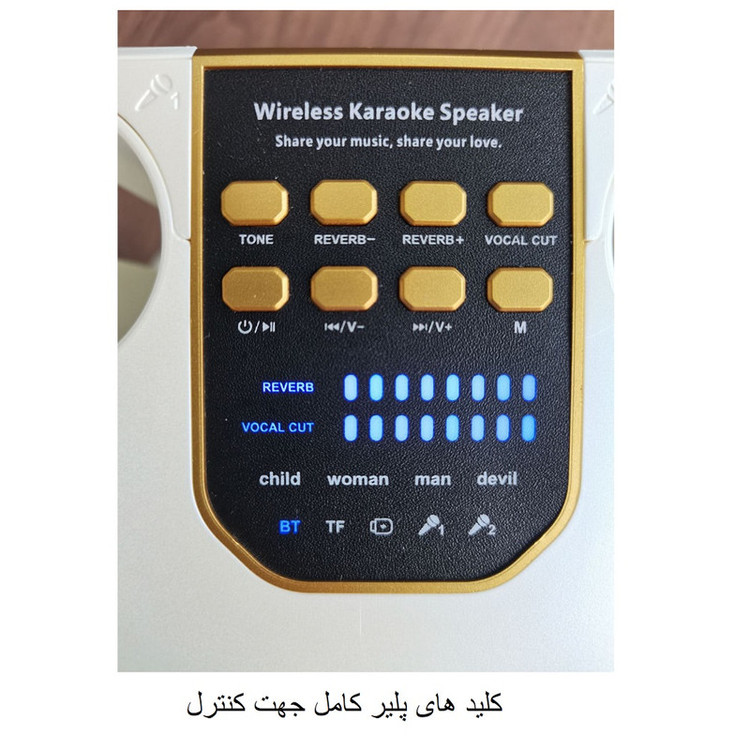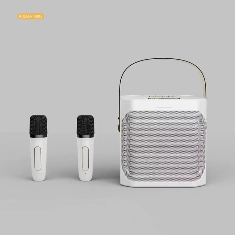 اسپیکر KOLLER مدل S882 از جدیدترین. با کیفیت ترین محصولات این برند محبوب است که از کارایی بالا و کیفیت ساخت فیزیکی بسیار خوبی برخوردار است. اسپیکر کلر S882 با داشتن 2 میکروفن بیسیم و قابلیت کاراوکه که دارد دستگاه بسیار کاربردی لذت بخشی برای استفاده در دور همی های خانوادگی میباشد. کیفیت صدای بالا و عمر باتری 4 ساعته ( در حالت پخش به صورت مداوم ) و .. این اسپیکر را متمایز از هم رده اسپیکر های این محدوده قیمت ها کرده.