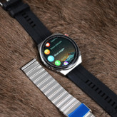 رنگ بدنه نقرهای با بند سیلیکونی مشکی و بند استیل نقرهای