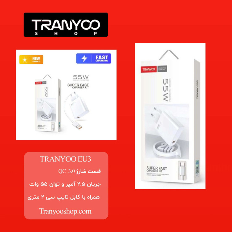 شارژر دیواری 55 وات ترانیو مدل EU3-C به همراه کابل USB-C