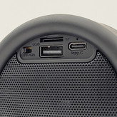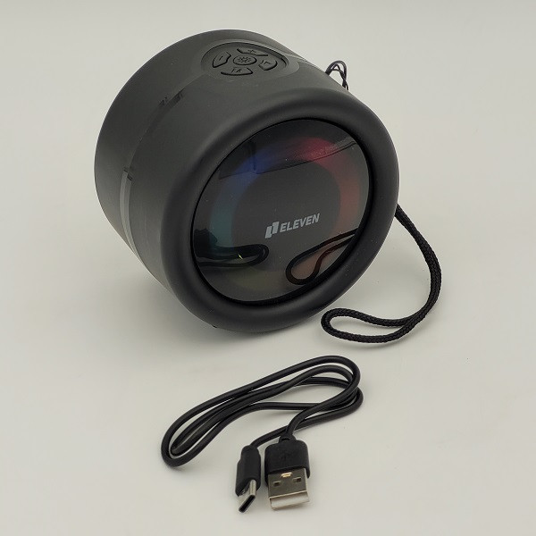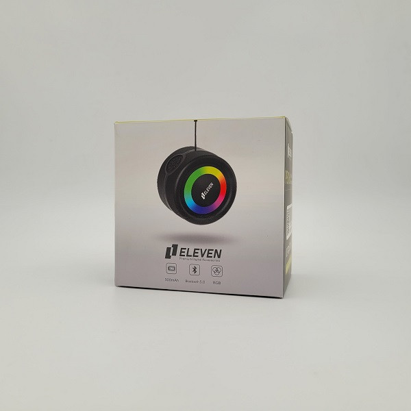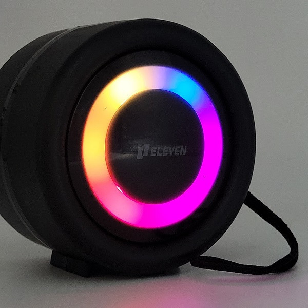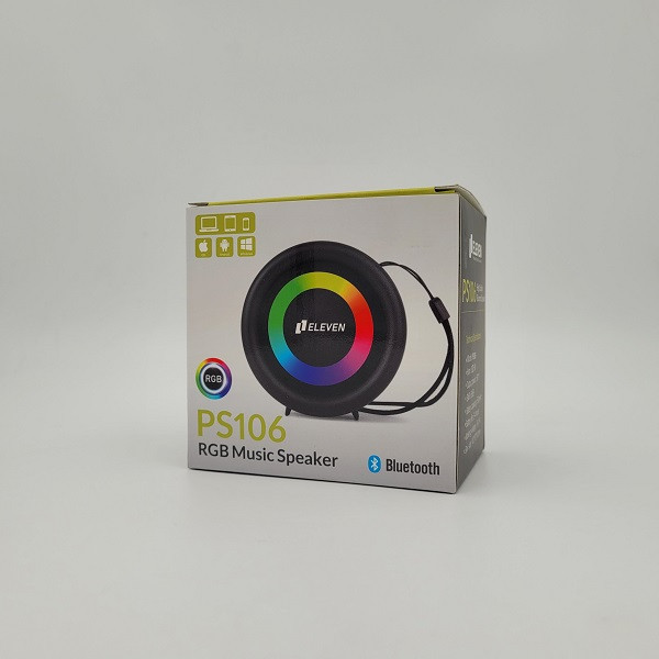 اسپیکر بلوتوث ELEVEN مدل PS106 با طراحی زیبا و دایره با ابعاد مناسب و وزن در حدود 300 گرم مناسب برای انواع دورهمی و مهمانی های کوچک در خانه میباشد. از مشخصات ظاهری آن ترکیب رنگ مشکی مات با یک نوار باریک RGB رنگ که در قسمت جلوی اسپیکر قرار دارد و پنل کنترل و مدیریت که به زیبایی بر روی آن طراحی شده است. این پنل شامل کلید مود M , کلید مثبت و منفی برای کم و زیاد کردن صدا و عقب جلو کردن ترک ها و همچنین کلید Play , pause می باشد. نوع اتصال به این اسپیکر بلوتوث ELEVEN مدل PS106 به دو صورت بیسیم و با سیم (بلوتوث، USB، میکرو SD card و یک ووردی جک 3.5 میلیمتری برای اتصال کابل aux) که شما بر حسب نیاز خود می توانید به بلندگو متصل شوید. همچنین مناسب با انواع گوشیهای موبایل، تبلت ها، کامپیوتر و هر دو سیستم عامل های IOS ، Android یا سایر دستگاه های Bluetoooth براحتی جفت میشود. از پارامتر های این بلندگو بی سیم ورژن بلوتوث 5.3 ، برد 10 متر و پشتیبانی از پروفایل های صوتی L2CAP / A2DP / AVCTP و همچنین میتواند دو فرمت صوتی WMA/MP3 در حالت فلش و کارت حافظه TF Card به راحتی اجرا کند؛ این دستگاه مجهز به رادیو با موج FM و قابلیت اسکن خودکار و ذخیره کانال های رادیویی میباشد. کیفیت صدای خوب با توان خروجی کلی 5W با درایور های 30 میلیمتری و باتری 500 میلی آمپر ساعت هستش.