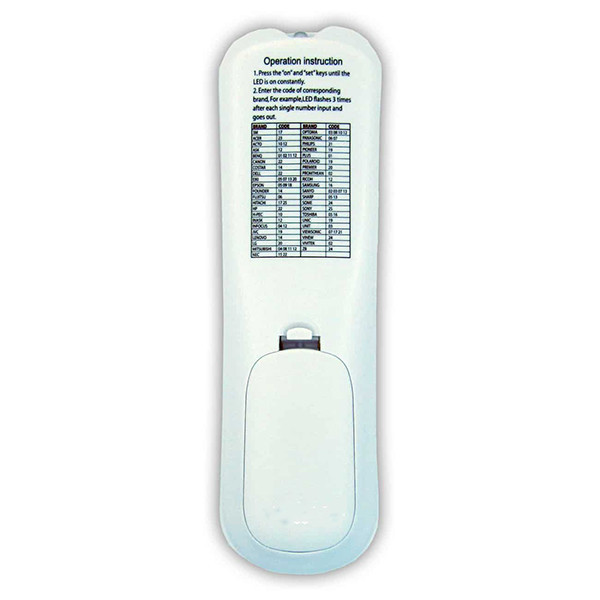 ریموت کنترل ویدئو پروژکتور از لوازم جانبی بسیاری از دستگاه ها از جمله ویدئو پروژکتور محسوب می شوند. ریموت کنترل ویدئو پروژکتور به علت استفاده زیاد و در دسترس بودن، بیشتر در معرض خرابی یا مفقودی قرار می گیرند و همچنین در بسیاری از محیط های آموزشی و کنفرانس ها و محیط های اداری به دلیل نصب سقفی ، امکان دسترسی به کلیدهای فرمان دستگاه جهت صاف یا برعکس کردن عکس برای استفاده در سقف،کم و زیاد کردن صدا و سایر تنظیمات وجود ندارد. به همین علت ریموت کنترل همه کاره ویدئو پروژکتور به بازار آمد که این ریموت کنترل ها قابل برنامه دهی برای انتقال کدهای خاص با در نظر گرفتن شرکت و مدل دستگاه به ریموت را دارد. این ریموت کنترل برای ویدئوپروژکتورهای nec, sony, panasonic, ricoh, acer, benq, toshiba, epson, lg قابل استفاده است. اگر کنترل اصلی ویدئو پروژکتور خراب شده است یا مفقود شده است این محصول انتخاب مناسبی جهت جایگزینی کنترل اصلی می باشد وهمچنین بودجه ای حدود یک سوم ریموت کنترل اصلی نیاز دارد و با همه برند های ویدئو پروزکتور سازگاری دارد.