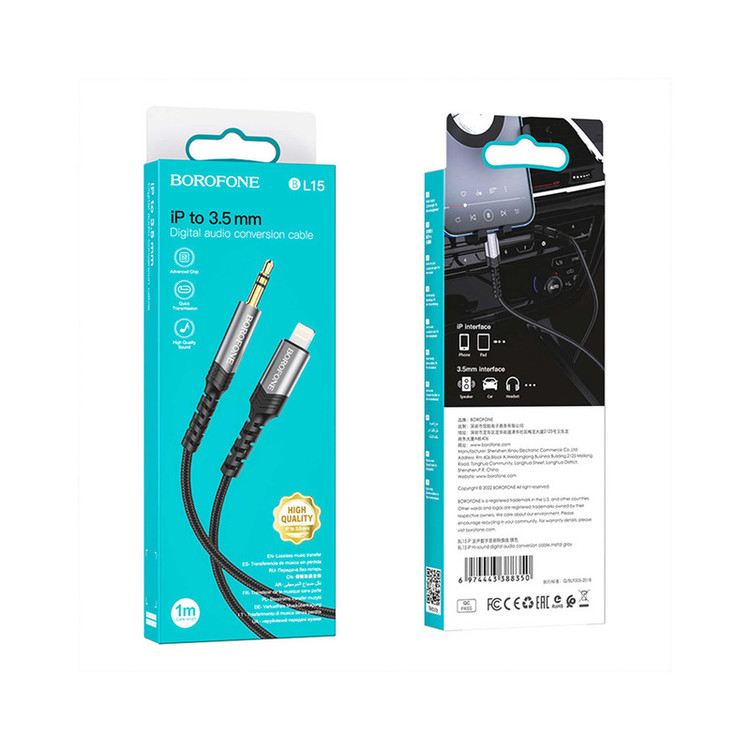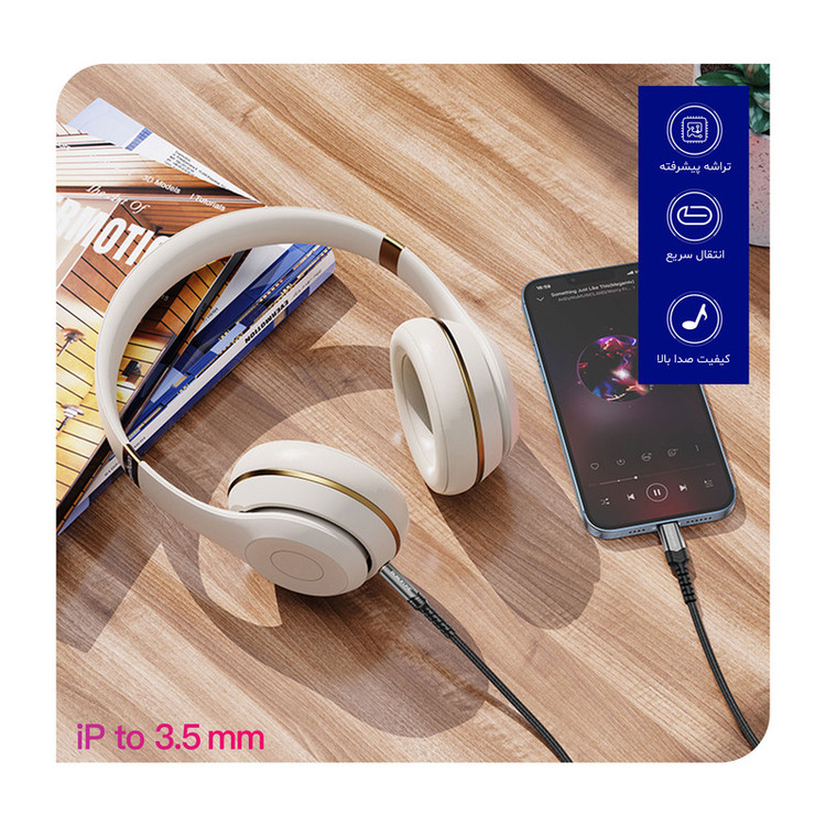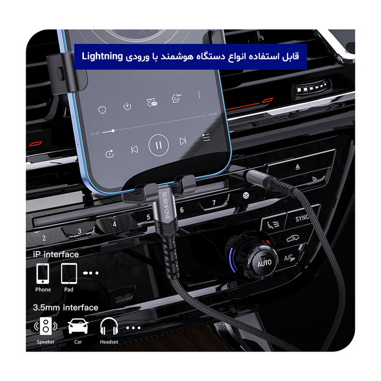 کابل تبدیل لایتنینگ به جک 3.5 میلی متری بروفون مدل BL15 طول 1 متر