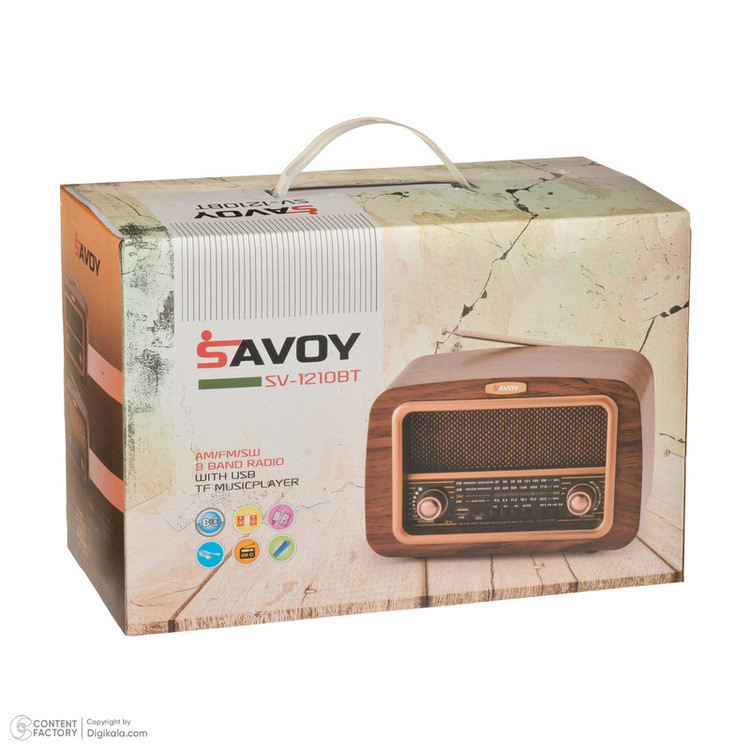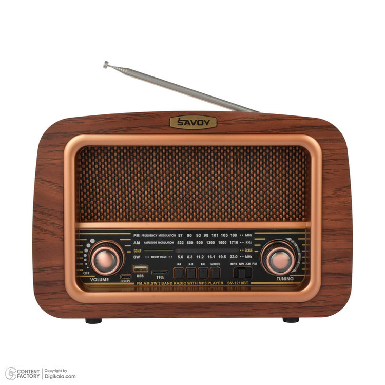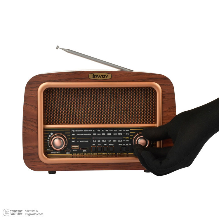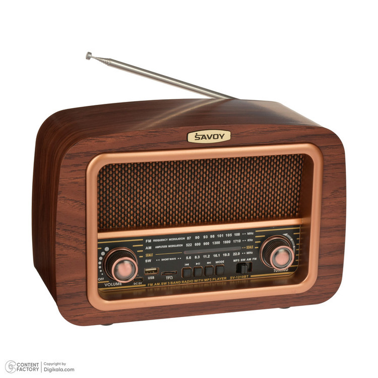با رادیو کلاسیک (SAVOY) ساووی مدل SV-1210BT، زمان را به عقب برگردانید و همزمان از امکانات مدرن لذت ببرید. این رادیو طرح قدیم با ظاهری شیک و جذاب، نه تنها به عنوان یک وسیله پخش موسیقی کاربردی عمل میکند، بلکه به عنوان یک قطعه دکوری بینظیر نیز در هر مکانی خودنمایی میکند. رادیو طرح قدیم مدل SV-1210BT با قابلیت پشتیبانی از سه موج رادیو AM, FM, SW به شما امکان میدهد تا از گستره وسیعی از ایستگاههای رادیویی در سراسر جهان لذت ببرید. این ویژگی، تجربهای بینظیر از گوش دادن به رادیو را برای شما به ارمغان میآورد.علاوه بر این، رادیو ساووی مجهز به درگاه USB و TF است، که به شما این امکان را میدهد تا موسیقی مورد علاقه خود را از طریق فلش یا مموری کارت پخش کنید. همچنین، با قابلیت بلوتوث این رادیو، میتوانید به راحتی از گوشی هوشمند، تبلت یا هر دستگاه دیگری به آن متصل شوید و موسیقی خود را بدون نیاز به سیم پخش کنید.یکی دیگر از ویژگیهای برجستهی رادیو ساووی مدل SV-1210BT، باتری شارژی ۱۲۰۰ میلی آمپر آن است که امکان استفادهی طولانی مدت و بدون نیاز به شارژ مکرر را فراهم میآورد. این امر به شما اجازه میدهد تا در هر زمان و مکانی، از موسیقی و برنامههای رادیویی مورد علاقهتان لذت ببرید.رادیو ساووی مدل SV-1210BT، با تلفیقی از طراحی کلاسیک و امکانات مدرن، انتخابی ایدهآل برای علاقهمندان به موسیقی است که به دنبال تجربهای متفاوت و لذتبخش هستند. این رادیو، نه تنها نیازهای شما را برآورده میسازد، بلکه با طراحی منحصر به فرد خود، جلوهای خاص به محیط زندگی یا کار شما میبخشد.اکنون زمان آن رسیده است که با رادیو(SAVOY) ساووی مدل SV-1210BT، به دنیایی از موسیقی و خاطرات غنی وارد شوید.