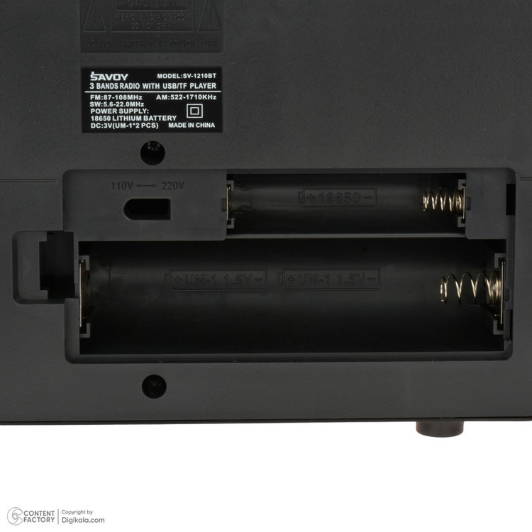 دارای ۳ موج رادیو AM-FM-SW-درگاههای ورودی USB , TF-دارای بلوتوث.باتری شارژی ۱۲۰۰ میلی آمپر