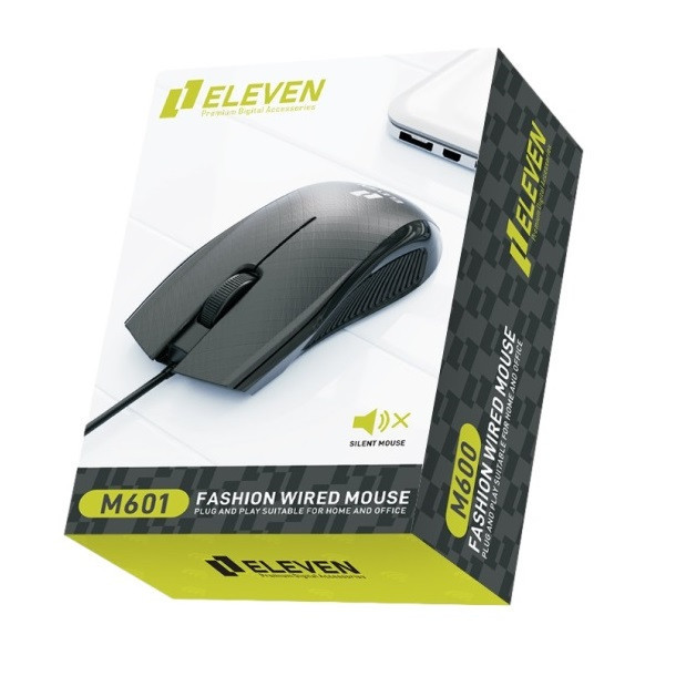 ماوس سیم دار ELEVEN مدل M601 دارای طراحی ارگونومیک جهت استفاده طولانی مدت از محصول می باشد. جنس بدنه ماوس مدل M601 از پلاستیک ABS مقاوم در برابر فشار و ضربه می باشد.برای نگهداری بهتر از ماوس از آن بر روی سطوح ناهموار استفاده نکنید و درصورت نیاز از پد ماوس استفاده کنید.از ویژگی های این ماوس اسکرول بدون نویز و حسگر اپتیکال با کیفیت آن است.ماوس مدل M601 شرکت ایلون با استفاده از یک کابل USB با روکش از جنس TPE مقاوم در برابر کشش و پارگی به سیستم شما متصل میشود و مجهز به حسگر اپتیکال با میزان دقت 1000DPI است.. عمرکاری سوئیچ این محصول بسیار بالا و تا 2 میلیون بار است. ماوس سیم دار ELEVEN مدل M601 با طراحی زیبا و با کیفیت خود یک محصول اقتصادی در میان رقبای خود می باشد.