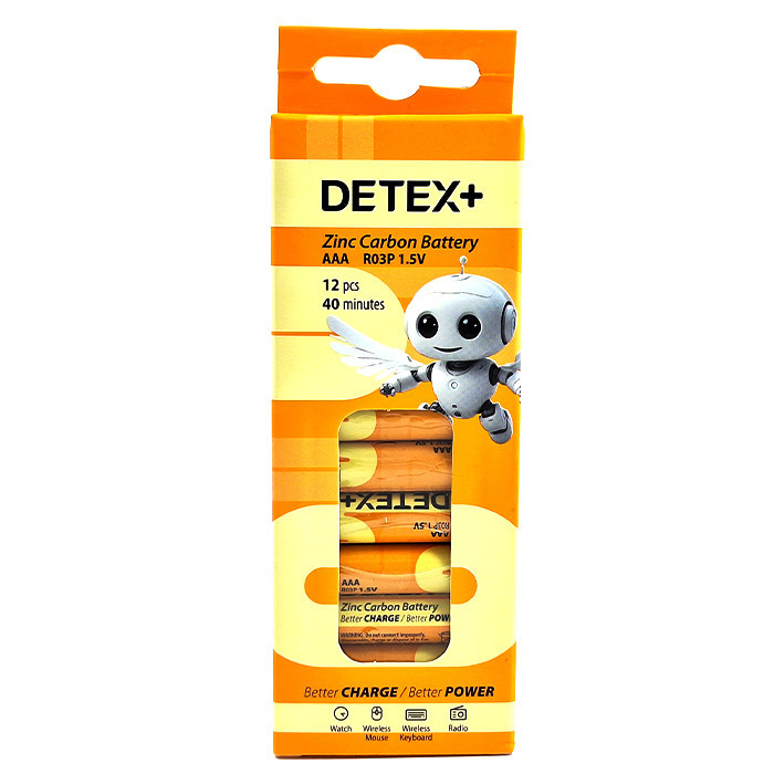 باتری نیم قلمی دتکس پلاس مدل R03P ZINC بسته 12 عدد