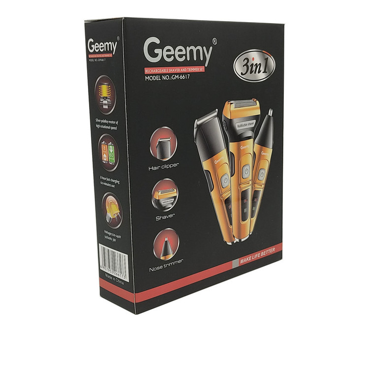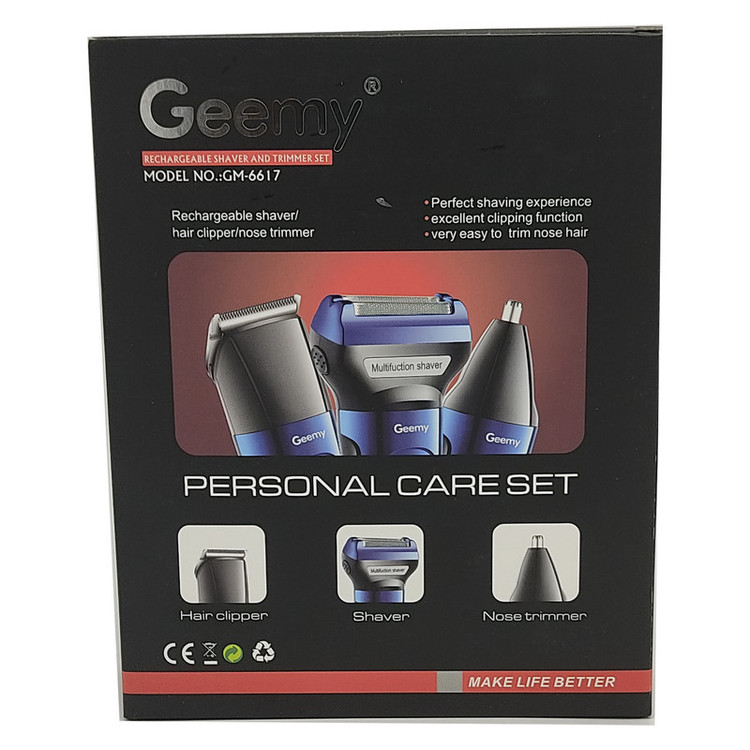 ماشین اصلاح صورت «جیمی» (GEEMY) مدل (gm-6617) جزو سری حرفه ای خانواده ی جیمی است و دارای سه سری مختلف می باشد و برای کسانی که موهای صورت خود را با شمارهی صفر اصلاح میکنند مناسب خواهد بود. این ماشین اصلاح به یک خط زن و یک سری اصلاح موی بینی نیز مجهز شده است. خط زن بیشتر برای مرتب کردن خط ریش یا قسمتهای دیگر موهای صورت کاربرد دارد. این دستگاه ظرف مدت 480 دقیقه کاملا شارژ میشود و پس از آن میتوان 60 دقیقه از آن استفاده کرد. میتوان گفت این میزان شارژدهی برای ماشین اصلاح صورت بسیار خوب است. همچنین طراحی ارگونومیک و وزن نسبتا کم دستگاه باعث میشود که کاربر هنگام اصلاح خسته نشود. روی این مدل یک نشانگر شارژ LED تعبیه شده است که هنگام به برق بودن دستگاه روشن میشود. گفتنی است همراه با این مدل درپوش محافظ و برس تمیزکننده هم ارائه میشود.