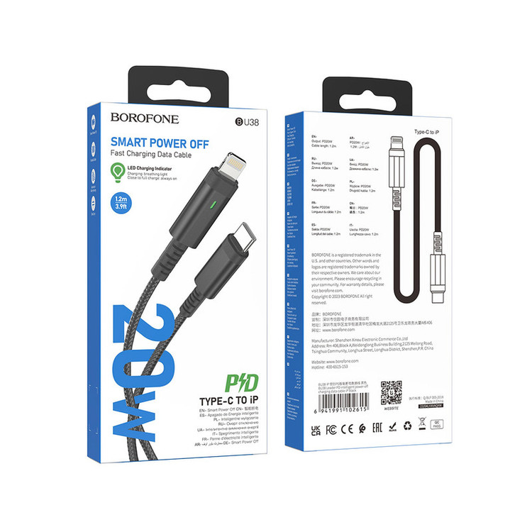 کابل تبدیل USB-C به لایتنینگ بروفون مدل BU38 20W طول 1.2 متر