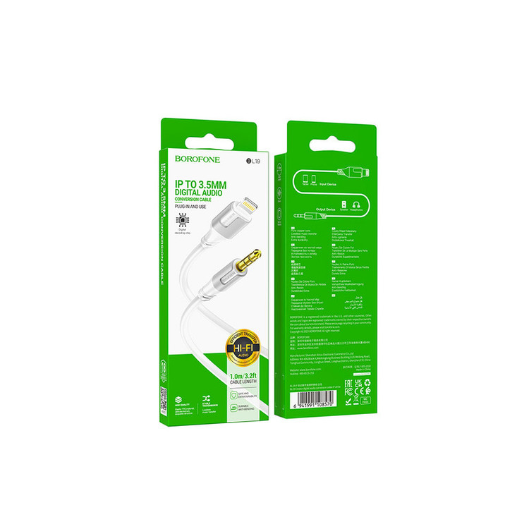 کابل تبدیل لایتنینگ به جک 3.5 میلی متری بروفون مدل BL19 طول 1 متر