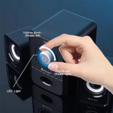 اسپیکر لپ تاپی سه تیکه Kisonli مدل U-2900BT از نوع بلندگو های دسکتاپی و رومیزی سیم دار و به عنوان یک پخش کننده خانگی کوچک با کیفیت بالا عملکرد صوتی عالی و طراحی مدرن ارائه شده است. این ست شامل یک ساب ووفر با سایز 13.5×12×10 سانتی متر و دو بلندگو با ابعاد 6.3×5.5×6 سانتیمتر کوچک، سبک و کم حجم با نصب آسان جای کی را اشغال کرده و علاوه بر زیبایی که میز شما میدهد با تولید صدای شفاف، با کیفیت و رسا شما را شگفت زده میکند. ساب ووفر این مجموعه دارای باس های عمیق و دو ماهواره از طریق فناوری بلوتوث و یا توسط یک کابل دو سر USB و جک 3.5 میلیمتری قابلیت اتصال داشته و مناسب برای اتصال به انواع تلویزیون و گوشی های نسل جدید، کامپیوتر، لبتاپ، DVD و MP3 پلیرها می باشد؛ و با تولید صدای با کیفیت با جلوه های صوتی واقع بینانه از تماشای فیلم، موسیقی و برنامه های تلویزیونی مورد علاقه خود لذت ببرید. وجود یک ولومر LED لمسی جهت on/off که با یک فشار میتوانید دستگاه را روشن و خاموش کرد و با دوبار کلیک میتوانید اقدام به تغییر مود بپردازید. همچنین این ولومر چرخشی جهت کم و زیاد کردن صدا و دسترسی آسان در جلوی ساب وفر تعبیه شده است. بلندگو های 2.1 کاناله اسپیکر لپ تاپی سه تیکه Kisonli مدل U-2900BT با توان خروجی 3 وات در هر باند و توان ساب ووفر نیز در حدود 5 وات با محدوده فرکانس بین 90Hz~20KHz و حساسیت 70 دسی بل پوشش خوبی در محیط های بسته می دهد. در آخر باید گفت U-2900BT با کیفیت عالی و تولید صدای شفاف و رسا یکی از محصولات شرکت معروف کیسونلی که یک برند معتبر و معروف چینی در زمینه عرضه انواع اسپیکر و بلندگو های شارژی و لبتابی بشمار می آید و با کیفیت و تنوع بالا می توان د پاسخگویی هر سلیقه باشد.
