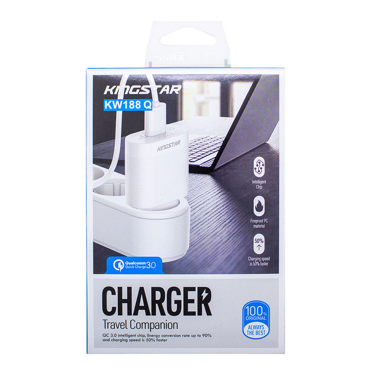 همه ما در دنیای فناوری و پیشرفت امروزی بیشازپیش به انرژی الکترونیکی نیاز داریم و با آن بسیاری از کارها و موارد نیاز روزمره و حتی تخصصی را سپری میکنیم. برقی که امروزه ما استفاده میکنیم دارای ۲۲۰ ولت شهری است و نمیتوان آن را به هر دستگاهی انتقال داد. برای این مورد آداپتورها و به دنبال آنها شارژرهای دیواری اختراع شدند که برق شهری را به برق مورد نیاز دستگاههای دیگر تبدیل میکنند. شارژر دیواری کینگ استار مدل KW188Q یکی از همخانوادههای همین شارژرهای دیواری یاد شده است. این شارژر ولتاژ ۲۲۰ ولت شهری را به ۵ ولت تبدیل میکند و آمپراژی معادل ۲.۴ را انتقال میدهد و این موضوع به لطف قطعات و مقاومتهای الکترونیکی داخل آن صورت میگیرد. شارژر دیواری KW188Q دارای تنها یک خروجی USB 3.0 است و آمپر ۲.۴ را هم بهلطف این درگاه در KW188Q در اختیار داریم. آمپر ۲.۴ بهاینمعنا است که گوشی یا هر وسیله الکترونیکی شما با سرعتی بالاتر و در بازه زمان کمتری شارژ میشود.