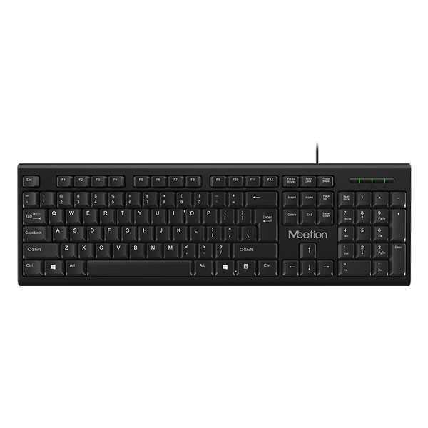 کیبورد Meetion MT-K100 با طراحی ارگونومیک و چینش مرسوم کلید ها انتخاب خوبی برای کاربردهای روزمره است. کار با این کیبورد راحت و دقیق است و کم صداست. کیبورد Meetion MT-K100 با کانکتور USB به سیستم شما وصل می شود. این کیبورد با ویندوز XP/Vista/7/8/10 و MAC OS سازگار است. طراحی کیبورد سیمی میشن MT-K100 در عین ارگونومی بودن به گونه ای است که در برابر پاشش آب هم مقاوت دارد. کیبورد Meetion MT-K100 برابر 438x134x25 میلیمتر است و وزنی حدودا برابر 410 گرم دارد. در لبه های بالایی کیبورد سیمی میشن MT-K100 دو پایه کوچک قرار دارد تا بتوانید ارتفاع قسمت بالایی را افزایش دهید تا راحت تر تایپ کنید.