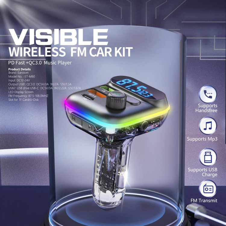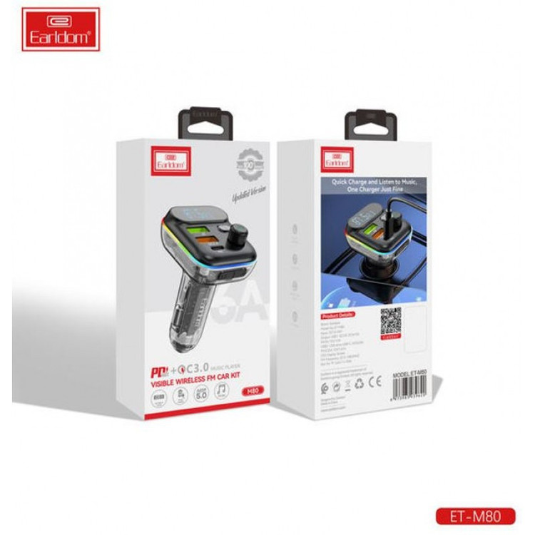 شارژر فندکی به یکی از مهم ترین ابزار داخل اتومبیل تبدیل شده است زیرا گوشی شما را در سفر های طولانی از خاموشی نجات می دهد. شارژر فندکی M80 محصولی از کمپانی EARLDOM بوده که به شما این امکان را می دهد تا بتوانید به راحتی گوشی موبایل خود را با تکنولوژی های شارژ سریع مانند QC3 و PD شارژ کنید. همچنین ویژگی خاص ارلدام M80 دارا بودن بلوتوث داخلی و ساپورت کردن فلش مموری است. این محصول به شارژر فندکی اتومبیل متصل می شود و بعد از آن می توانید بعنوان یک FM Player استفاده کنید. جنس بدنه این محصول از پلاستیک + ABS بوده که مقاومت آن را در برابر ضربه و فشار و حرارت بسیار بالا برده است. .در قسمت رو به روی این محصول شاهد 3 پورت usb می باشیم که اولین پورت قابلیت اتصال فلش تا 32 گیگ را دارد و پورت دوم شارژ سریع QC3 و پورت سوم که بصورت تایپ C هست مخصوص شارژ گوشی های جدید با تکنولوژی PD 20W می باشد . همچنین این گجت از مموری micro SD نیز پشتیبانی می کند .بر روی این محصول صفحه نمایشگری قرار دارد که موج رادیو را به ما نشان می دهد. شما می توانید به راحتی از طریق بلوتوث به این محصول متصل شوید و به مکالمات خود از طریق آن پاسخ دهید. بر روی بدنه این محصول سه کلید فیزیکی قرار دارد که به وسیله آن می توانید به راحتی تغییرات موسیقی و ولوم و مدیریت تماس ها بر عهده بگیرید.