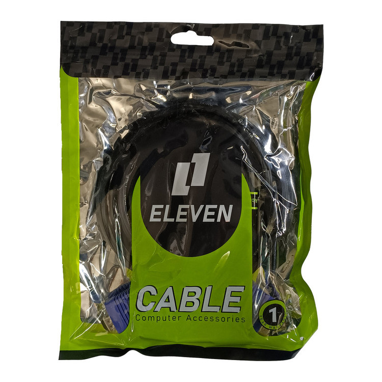 کابل VGA الون مدل EL-300 از مجموعه محصولات باکیفیت الون (ELEVEN) است از نوع سر سوکت پرس شده و با رشته هایی از جنس آلومینوم می باشد که در متراژ 3 متر نیز تصویر را انتقال می دهد. این محصول در واقع یک کابل رابط VGA برای انتقال تصویر است. در هر دو سمت این کابل یک کانکتور 15 پین VGA قرار گرفته شده است.پورت VGA یک درگاه استاندارد برای اتصال به دستگاههایی با قابلیت پخش فایلهای ویدئویی مانند مانیتور و پروژکتور است. برای اتصال این درگاه به مانیتور یا پروژکتور باید از کابل هایی با کانکتورهای VGA بهره گرفته شود. عبارت VGA مخفف عبارت Video Graphics Array است. درگاه های VGA دارای 15 پین (DB-15) بهصورت سه ردیفی هستند؛ البته در استاندارد Mini-VGA تعداد پینها 14 عدد و بهصورت دو ردیفی است. وظیفهی این درگاه ها، انتقال داده های تصویری به صورت آنالوگ است.
