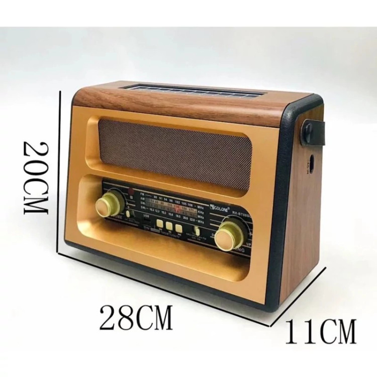 با رویکار آمدن شبکه های مجازی و اینترنت همچنان رادیو طرفداران پرو پا قرص خود را دارد . این دستگاه با طراحی کلاسیک به شکل رادیوهای قدیمی اما با کارکردی امروزی میباشد که توانایی پخش فایل های صوتی با فرمت MP3 را از طریق درگاه های ورودی AUX و USB و پورت کارت حافظه SDدارد. رادیوی گولون مدل RX-BT88SQ علاوه بر امکان استفاده از برق شهری ، با داشتن باتری داخلی قابل شارژ و امکان استفاده از 6 باتری معمولی مدل UM-1 در همه جا میتواند همراه خوبی برای شما باشد .در این محصول به دلیل حفظ ظاهر کلاسیک رادیو دسته تعبیه نگردیده است . با داشتن 4 موج رادیو دیگر نگران از دست دادن برنامه رادیویی مورد علاقه خود نباشید .با خرید این محصول کاربردی شما تنها صاحب یک رادیو نگردیده اید بلکه صاحب یک پلیر قوی هم شده اید .با داشتن آنتن تلسکوپی بر روی دستگاه به راحتی میتوانید در هر مکانی به ایستگاه رادیویی دلخواه خود متصل و از شنیدن رادیو لذت ببرید . این رادیو باداشتن 3 درگاه ورودی : USB و فلش در سایز SD و همچنین اتصال از طریق بلوتوث میتواند یک پلیر کاربردی با صدای عالی برای شما باشد . از دیگر امکانات این دستگاه میتوان به بلندگوی با کیفیت استریو و ورودی AUX اشاره نمود . ریموت کنترل موجود در این محصول کاربری را برای شما راحت تر مینماید . و در آخر ویژگی عالی آن داشتن پنل شارژ خورشیدی میباشد ک با نئر نیز شارژ میشود.