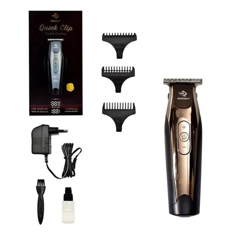 ماشین اصلاح رزونال مدل Quick clipیک ماشین اصلاح کاملا حرفه ای با دقت خط زنی بسیار بالا می باشد. این ماشین اصلاح دارای تیغه های بسیار تیز از جنس استیل ضد زنگ است. تیغه های این ماشین اصلاح به حالت T شکل با قابلیت صفر زنی طراحی شده است. از نکات مثبت این محصول می توان به طراحی ظریف و زیبا و همچنین قابلیت استفاده به دو حالت شارژ و یا برق مستقیم اشاره کرد. جنس بدنه این ماشین اصلاح از استیل ضد زنگ است. باطری این محصول از نوع لیتیومی می باشد که از طول عمر و دوام بسیار بالایی برخوردار است. همراه این محصول 3 عدد شانه تنظیم ارتفاع برش در سایزهای مختلف به همراه روغن مخصوص، فرچه تمیز کاری و آداپتور شارژ در یک بسته بندی زیبا دریافت خواهید کرد.