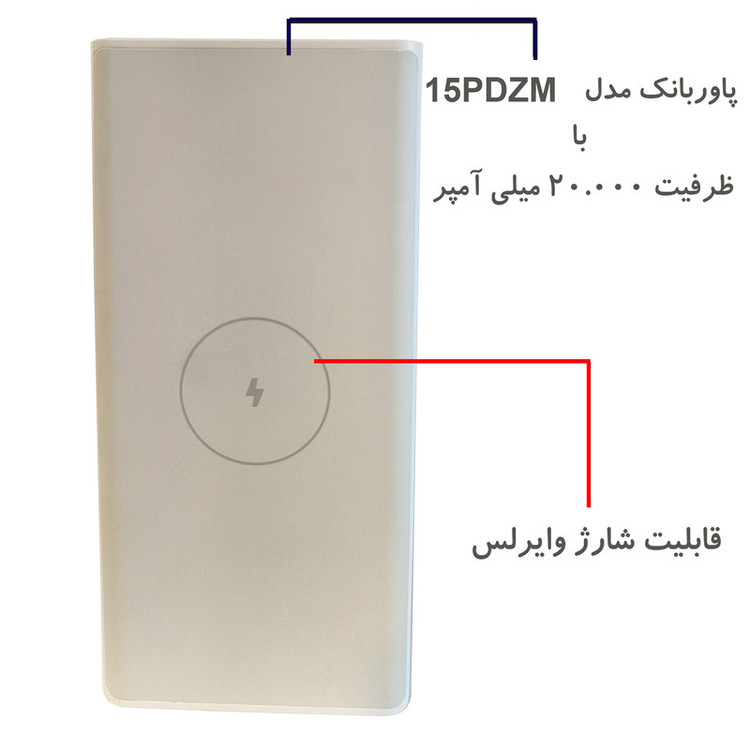 پاوربانک مدل WPB15PDZM یک پاوربانک حرفه ای با ظرفیت 20.000 میلی آمپر و با قابلیت شارژ وایرلس می باشد.