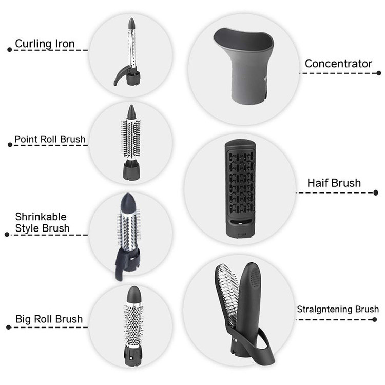 دارای 4 سری برسی در سایز های مختلف سری متمرکز کننده باد سری مخصوص صاف کردن مو سری مخصوص فر کردن مو