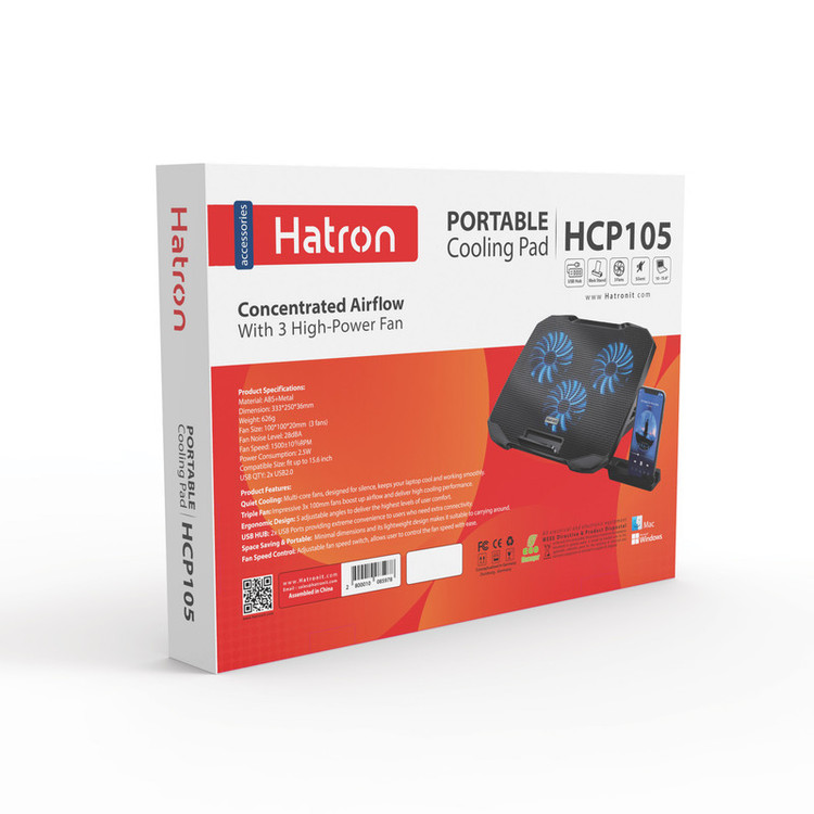 برند Hatron یکی از بهترین تولیدکنندگان لوازم جانبی کامپیوتر و لپتاپ در ایران است. پایه خنککننده لپتاپ هترون مدل HCP105 از جمله مدلهای گیمینگ این برند دارای 3 عدد فن خنککننده با سرعت گردش فن 1500±10% دور در دقیقه دور در دقیقه است. بدنه ساخته شده از جنس ABS و فلز این مدل، مقاومت در برابر فشار و آسیبهای احتمالی را تضمین میکند. همچنین امکان تنظیم ارتفاع از طریق پایه تعبیه شده در 5 سطح مختلف وجود دارد. بهرهمندی از 2 پورت USB با قابلیت انتقال دیتا محدودیتهای استفاده از پورتهای لپتاپ را جبران میکند. HCP105 مناسب برای انواع لپتاپها با سایز تا 15.6 اینچ است و با تعبیه چراغ LED روی فن و نورپردازی داخلی جلوه بصری زیبایی ایجاد کرده است. همچنین با استفاده از یک سوئیچ بر روی بدنه آن میتوانید میزان سرعت، تعداد فنهای در حال کار و حالت نوردهی را مطابق با سلیقه خودتان تنظیم کنید. این مدل دارای یک عدد کابل USB، نگهدارنده موبایل و لبه(پایه) نگهدارنده بهمنظور جلوگیری از سرخوردن و افتادن لپتاپ است. ولتاژ کاری 5 ولت DC، جریان کاری 0٫5±10% آمپر و توان مصرفی 2.5 وات است. این کولپد به عنوان یک میز کار قابل حمل عمل کرده و فضای کاری شما را بهینه سازی میکند.