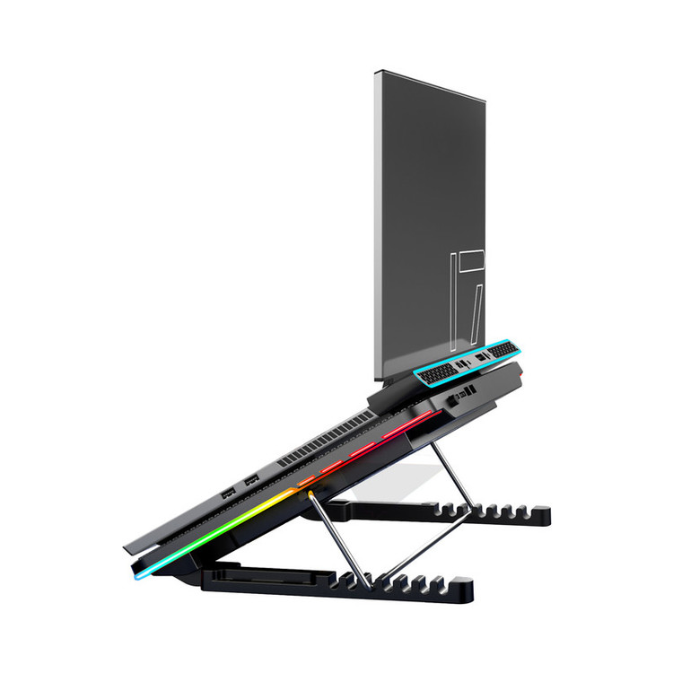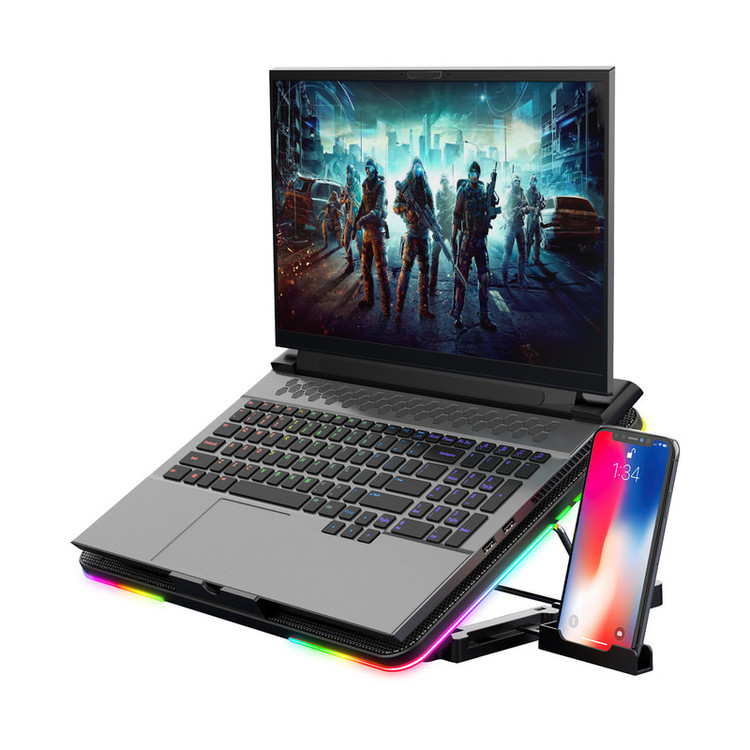 دارای7 زاویه برای تنظیم ارتفاع - سرعت فن: 22۰۰ دور بر دقیقه - قابلیت تنظیم سرعت فن -دارای یک درگاه USB اضافی (با قابلیت انتقال دیتا)- دارای چراغ LED فن - کاملا بی صدا-دارای نوار RGB با قابلیت تغییر زنگ در 12 حالت-دارای پایه نگهدارنده موبایل
