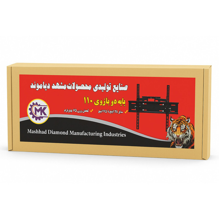 پایه دیواری متحرک دوبازو با ورق آهن ضخیم و سنگین حدود ۱۰ کیلوگرم و تحمل وزن تا وزن ۶۵ کیلوگرم و تلویزیون های ۶۵ و حداکثر تا ۷۵ اینچ. ورق اهن کره ای حرارت داده شده. شامل تمامی پیچ الات مورد نیاز نصب داخل بسته بندی.