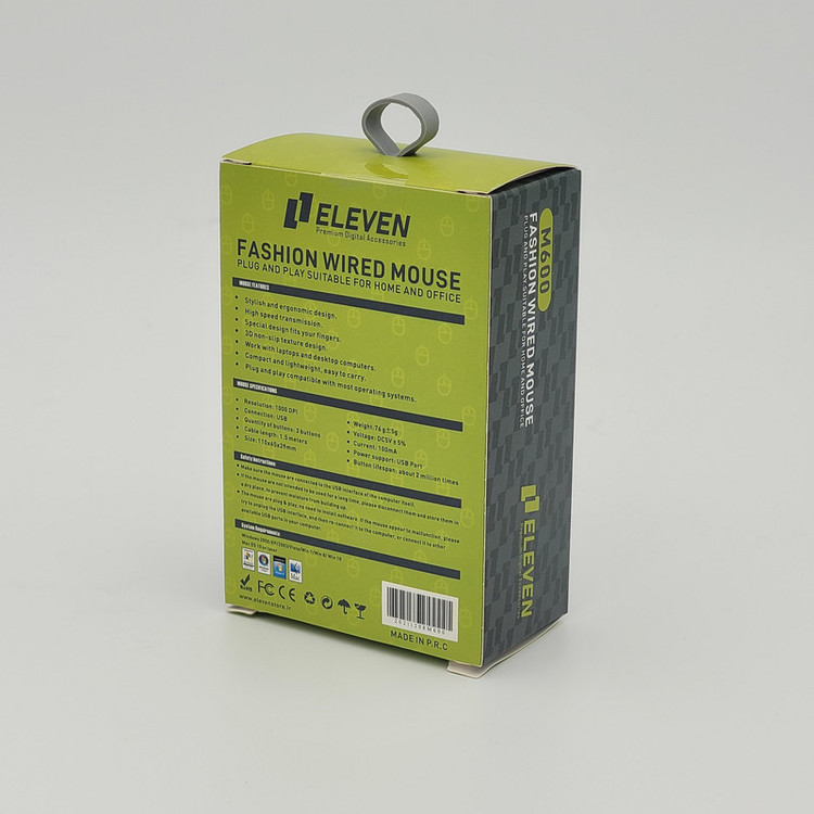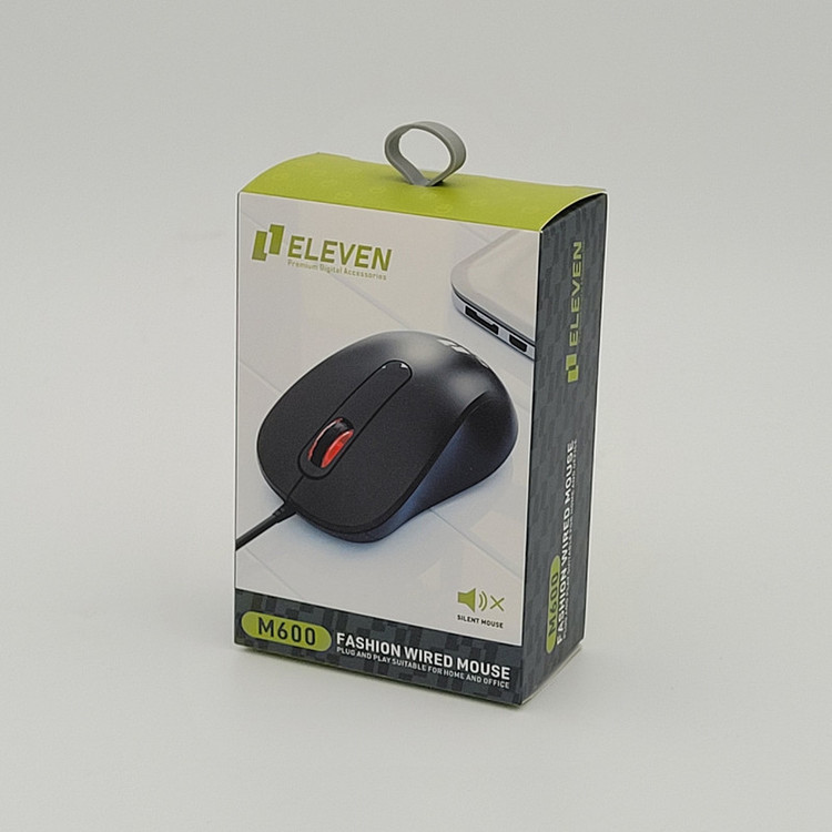 ماوس مدل M600 یکی از محصولات برند ELEVEN است که بهخاطر کیفیت بسیار بالا و کلید های سایلنت که دارد مورد استقبال افراد زیادی قرار گرفته است. ماوس ELEVEN مدل M600 به وسیله کابل USB به کامپیوتر یا لپ تاپ متصل میشود. طول این کابل 1.5 متر است و اینگونه برای جابجا کردن ماوس هیچ مشکلی نخواهید داشت و شما بهراحتی آن را میتوانید حمل کنید. دقت این ماوس 1000 DPI است و یکی از دقیقترین ماوسهای موجود در بازار شناخته میشود. این ویژگیها موجب شدهاند تا این ماوس برای استفاده روزمره بهترین گزینه باشد. تعداد دکمههای این محصول 3 عدد است که هر کدام از اینها عملکرد متفاوتی دارند. کار کردن با این ماوس با هر دو دست امکانپذیر و راحت است. ابعاد این محصول طوری است که با در دست گرفتن آن حس بسیار خوبی را تجربه خواهید کرد و به در طولانی مدت، احساس خستگی نمیکنید.