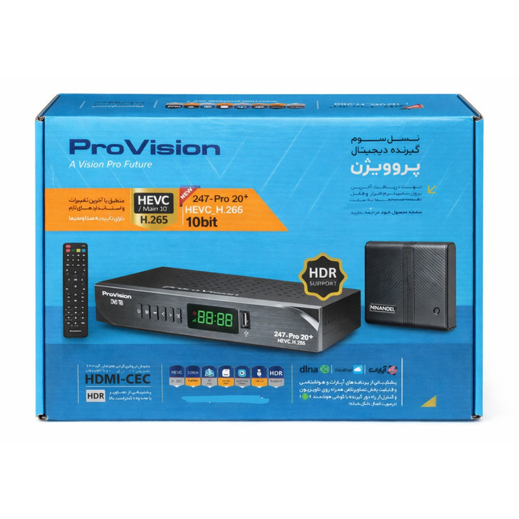 DVB-T گیرنده دیجیتال پروویژن مدل 247-pro20-plus به همراه آنتن رومیزی ناندل