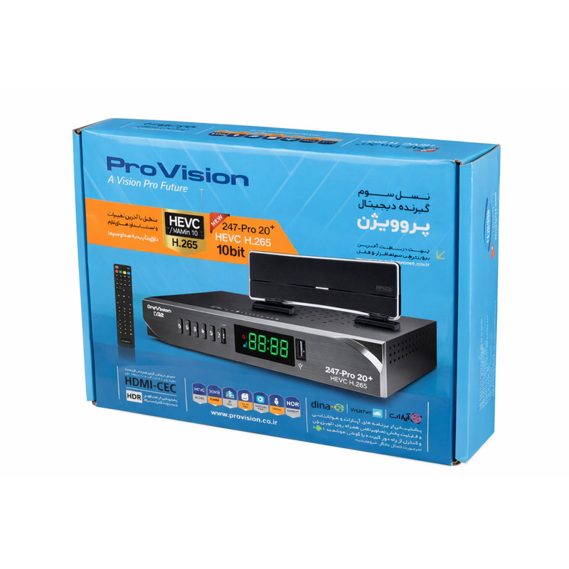 گیرنده دیجیتال پروویژن مدل 247-pro به همراه آنتن رومیزی سیما باخ