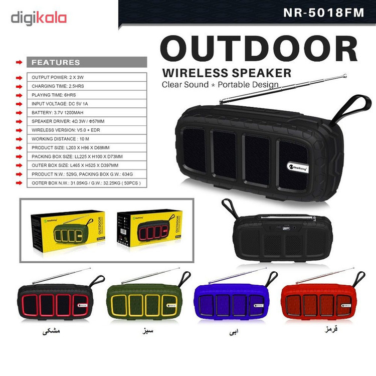 این اسپیکر دارای 2 عدد بلندگو با توان خروجی 3 وات میباشد که صدای قابل قبولی را به خریدار ارایه میدهد . همچنین با باتری 1200 میلی امپری شما را از تمام شدن های ازار دهنده باتری راحت میکند . این اسپیکر قابلیت TWS را دارد که به شما این اجازه را میدهد که 2 عدد اسپیکر را همزمان به هم وصل کنید و از صدای بیشتر لذت ببرید .