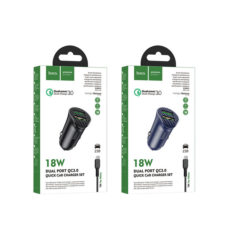 شارژر فندکی هوکو مدل Z39 QC3.0 18W به همراه کابل تبدیل MICROUSB