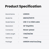 کابل تبدیل USB-C به HDMI یوگرین مدل MM142-50570 طول 1.5 متر