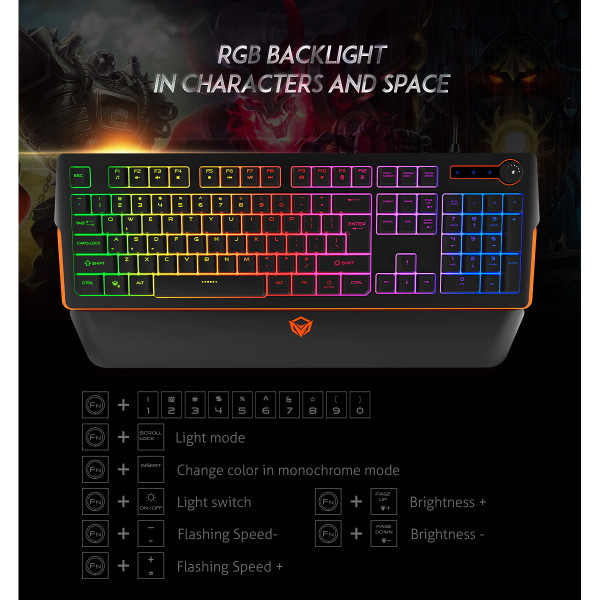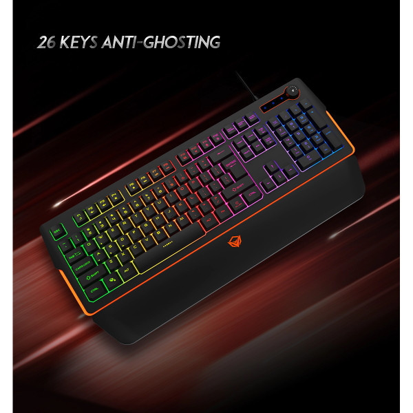 کیبورد مخصوص بازی میشن MEETION MT-K9520 یکی از جدید ترین محصولات برند معتبر و محبوب میشن می باشد که در زمینه تجهیزات گیمینگ فعالیت می کند. این برند به علت تولید محصولات با کیفیت ولی با قیمت کم محبوب است.کیبورد مخصوص بازی میشن MEETION MT-K9520 نسبت به امکاناتی که دارد قیمت معقولی دارد و ارزش خرید بالایی را به محصول داده است. این کیبورد دارای 104 کلید می باشد و با USB به کامپیوتر وصل می شود. سیم این محصول 1.8 متر طول دارد و زن آن تقریبا 790 گرم میباشد.