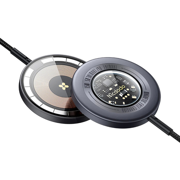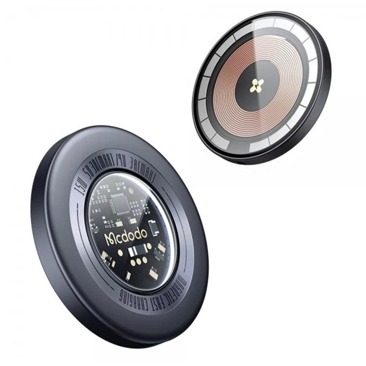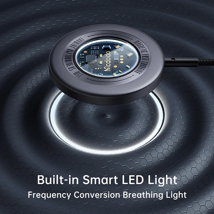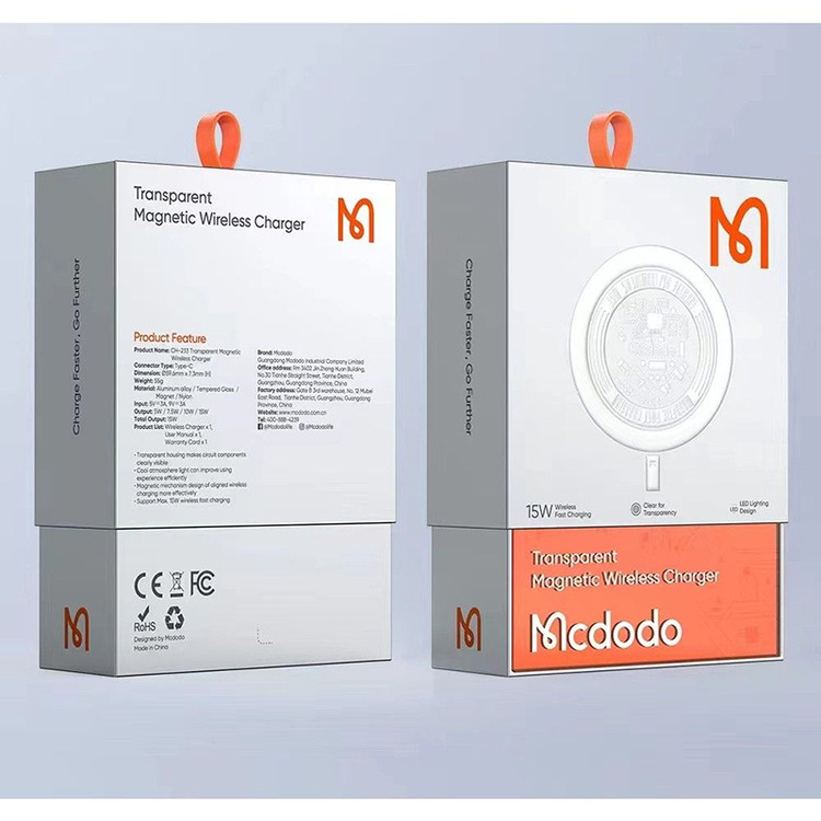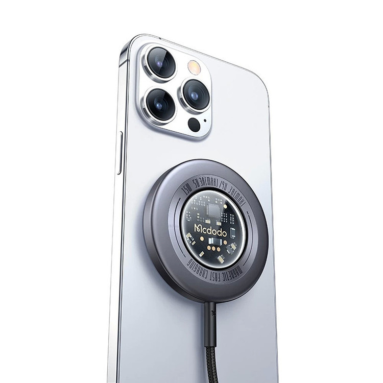 دارای طراحی فوقالعاده شیک و بادوام دارای چراغ LED و مشاهده وضعیت شارژ دارای 16 هسته مغناطیسی قدرتمند سیم پیچ القاء مس خالص با چگالی بالا فست شارژ کابل متصل به بدنه تایپ سی شارژ وایرلس 15 واتی