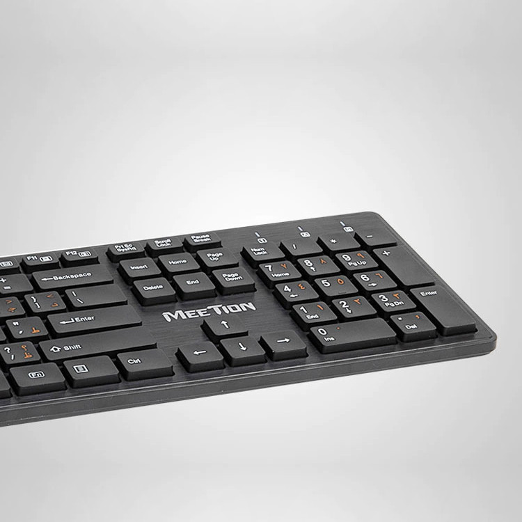 کیبورد «MT-WK841» محصولی از شرکت «میشن» (Meetion) یک کیبورد بیسیم و اقتصادی است. این محصول دارای طراحی باریک، زیبا و ظریف و کیفیت ساخت بسیار مطلوب است و نیازهای خانگی و اداری را پاسخگو است. این کیبورد از طراحی جزیرهای برخوردار است و حس تایپ با لپتاپ را به کاربر القا میکند. کلیدهای این صفحهکلید طول عمری بیش از 10 میلیون بار ضربه دارد. این کیبورد انرژی خود را از یک باتری نیمهقلمی (سایز AAA1.5V) تأمین میکند. استفاده از این کیبورد بسیار راحت است و نیاز به هیچگونه نصب و راهاندازی ندارد و با تمام سیستمعاملهای رایج سازگاری کامل دارد. این کیبورد به دلیل وایرلس بودن این امکان را میدهد که تا فاصله 10 متری بتوان از آن استفاده کرد. حروف چاپ شده بر روی این کیبورد با فناوری UV درج شده است که در استفاده طولانی پاک نمیشوند. در مجموع میتوان این کیبورد را مناسب و مقرونبهصرفه برای مصارف روزمره دانست.