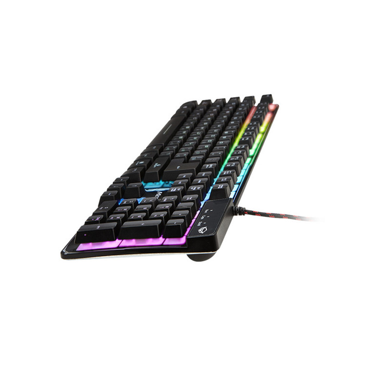 این روزها استفاده از لوازم کامپیوتری تقریباً برای اکثر افراد تبدیل به امری روزمره و اجتنابناپذیر شده است. کامپیوترها نقش غیرقابلانکاری را در زندگی شخصی و کاری ما انسانها به عهده دارند. این موضوع سبب شده انتخاب و استفاده از لوازم کامپیوتری باکیفیت، خوشساخت و مقاوم از اهمیت زیادی برخوردار باشد. بدیهی است یکی از متعلقات کامپیوتر که کاربر بیشترین استفاده را بهصورت مستقیم از آن انجام میدهد کیبورد است و شاید ساعتها در روز دستان شما روی صفحه کیبورد قرار بگیرد. محصول «MT-K9300» یکی از کیبوردهای کاربردی و خوشساخت ارائهشده به بازار است. این کیبورد مخصوص بازی در دسته کیبوردهای سیمدار قرار میگیرد و از طریق اتصال USB به کامپیوتر وصل میشود. یکی از ویژگیهای این کیبورد، قابلیت بهرهمندی از 19 کلید Anti Ghost است. این ویژگی به گیمر این اجازه را میدهد تا بتواند با خیال راحتتری بازی کند و دیگر نگران این نباشد که در هنگام فشردن همزمان چند کلید، یک یا چند عدد از کلیدها در بازی ثبت نشوند. از دیگر ویژگیهای این محصول میتوان به نور پسزمینه قابلتنظیم، کلیدهای ترکیبی کنترل محتوای چندرسانهای و ظاهری شیک اشاره کرد که هم میتواند تداعیگر یک صفحهکلید گیمینگ و هم نمایانگر یک صفحهکلید بسیار مناسب مخصوص کارهای روزانه باشد.گفتنی است کلید ترکیبیFN برای کنترلرهای مولتیمدیا در این محصول قرار دارند که از طریق آنها میتوانید صدا را بدون خارج شدن از برنامهها و بازیها تنظیم نمایید. MT-K9300 محصولی استاندارد است که از صفحهکلید عددی پشتیبانی میکند. کیبورد MT-K9300 دارای نور پس زمینه با فناوری LED RGB است. این ویژگی به گیمرها امکان انتخاب طیف وسیعی از رنگها را طبق سلیقهشان میدهد. همچنین افکتهای نوری متعددی در این محصول تعبیه شده تا هیجان کافی را هنگام بازی به کاربران منتقل کند. بهعنوان مثال میتوان به حالت رنگینکمانی (Rainbow) اشاره کرد که در واکنش به صدای محیط ، جلوههای نوری جذابی ایجاد میکنند. علاوه بر این میتوان با استفاده از تنظیمات صفحهکلید، سطح نور LED زمینه را تا 4 درجه تنظیم کرد.