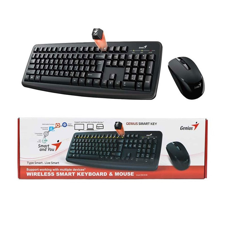 شرکت جنیوس اینبار با ارایه یک محصول جدید و هوشمند توانست برای چندمین بار خود را بین تولید کنندگان محصولات جانبی مطرح نماید. این محصول یک کیبورد و ماوس وایرلس هوشمند مدل Smart KM-8100 است. چیزی که این محصول را در بین رقبای خود برتری می بخشد علاوه بر کیفیت ساخت ، زیبایی ، استحکام ، وزن کم ، ضد آب ، ضد گردوغبار ، مصرف کم باتری و پایه های تنظیم ارتفاع کیبورد ، کلیدهای هوشمند و چند کاربره سری F است بطوریکه هر 12 کلید سری F با یک کلید هوشمند که در بالای کلید Backspace قرار دارد کنترل می شود و در محیط های نرم افزاری گوناگون مانند پخش مالتی مدیا ، تایپ ، اینترنت ، میانبرهای خصوصی و ... با فعال سازی این کلید می توان کاربری کلید های سری F را متناسب با آن محیط تغییر داد. این کیبورد و ماوس هرکدام تنها با یک باتری نیم قلمی سایز AAA فعال می شوند و نمایشگر مصرف باتری ، نمایشگر Num Lock و Caps Lock و کلید روشن/خاموش ماوس نیز بر برتریهای این محصول افزوده است و دارا بودن حروف فارسی تقریبا همه قابلیت های کیبورد را تکمیل نموده است. ماوس سایز متوسط این محصول که از زیبایی و طراحی ساخت خاصی برخوردار می باشد گفته می شود 1000 dpi است و قابلیت استفاده با هر دو دست را داراست.
