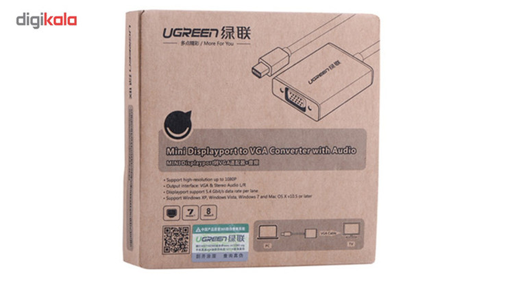 مبدل «10437» محصولی از برند «یوگرین» (UGREEN) است. این مبدل، یک تبدیل پورت Mini DisplayPort به VGA است و یک مبدل تصویری محسوب میشود. مبدل 10437 یوگرین میتواند خروجی Mini DisplayPort کامپیوتر را به پورت آنالوگ VGA یا همان D-Sub تبدیل کند. با استفاده از این مبدل خواهید توانست کامپیوترها و لپتاپهای جدید را به مانیتورهای قدیمی یا ویدئو پروژکتورها وصل کنید. حداکثر استاندارد تصویری قابل ارائه در 10437 مقدار Full HD است. بدنهی این تبدیل از جنس آلومینوم ساخته شده و میتواند تا مدتها با کیفیت زیاد برای شما انجام وظیفه کند. اکثر لپتاپهای مک بوک (MacBook) به این پورت مجهز هستند و دارندگان مک بوک از اصلیترین مشتریان این تبدیل خواهند بود. علاوه بر ارائهی خروجی تصویر VGA، صدای دریافتی از پورت Mini DisplayPort هم در خروجی صدای 10437 ارائه میشود. برای گرفتن صدا میتوانید کانالهای چپ و راست را در قالب جکهای 3.5 میلیمتری دریافت کنید.