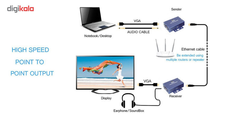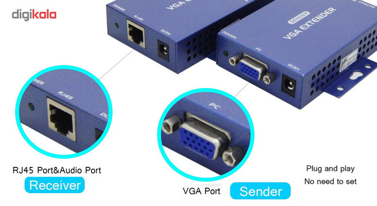 استفاده از یک کابل Cat5e برای اتصال فرستنده و گیرنده پشتیبانی از انواع مانیتورها دارای دو خروجی تصویر سازگار با تمامی سیستم عامل ها