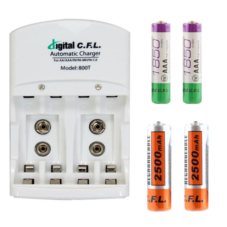 شارژر باتری دیجیتال سی اف ال مدل 800T به همراه 4 عدد باتری