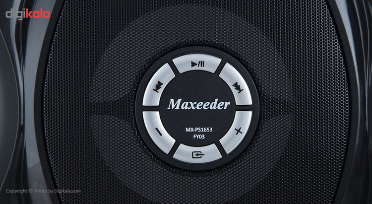 پخش کننده خانگی مکسیدر سری MX-PS1653 مدل FY03در واقع یک ست اسپیکر است که قابلیتهای کاربردی دارد. این دستگاه از دو اسپیکر و یک ساب ووفر تشکیل شده است و ساب ووفر در واقع قسمت اصلی دستگاه است. روی آن یک صفحه نمایش LED تعبیه شده و اطراف آن کلیدهای کنترل و پورتهای ورودی قرار دارند. کاربر برای پخش کردن موسیقی میتواند به دستگاه فلش وصل کنید یا این که به آن کارت حافظهی SD وصل کند. متنوع بودن روشهای اتصال به دستگاه کار کردن با آن را بسیار ساده کرده است. این دستگاه دارای رادیو نیز است و از موج FM پشتیبانی میکند. باتوجه به حداکثر توان خروجی 3800 واتی دستگاه، میتوان گفت برای یک سالن بزرگ کافی خواهد بود. همچنین ساب ووفر آن میتوان باس بسیار قوی و عمیقی تولید کند که گوش دادن به موسیقی را بسیار لذت بخش خواهد کرد. این نکته هنگام تماشا کردن فیلم نیز میتواند به طبیعیتر شدن صدا کمک کند. در پایان این که برای ساده شدن کار با دستگاه، برای آن ریموت کنترل نیز در نظر گرفته شده است.