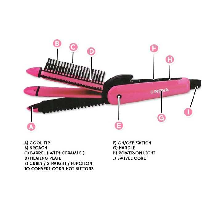 دارای 3 کاربرد مختلف اتو مو ویو مو فر کننده تغییر حالت تنها با فشردن یک دکمه طول دستگاه 245 میلی متر اندازه صفحه 90x25 میلی متر دارای استاندارد CB و CE اروپا